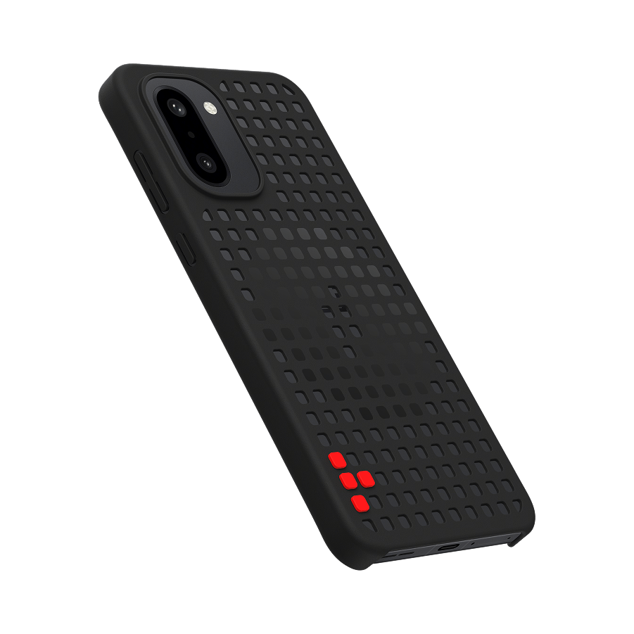 המטריצה עם חיתוכים מסיימת את עודף החום, ומספקת אוורור ונגיעה כמעט כמו של טלפון ללא כיסוי.